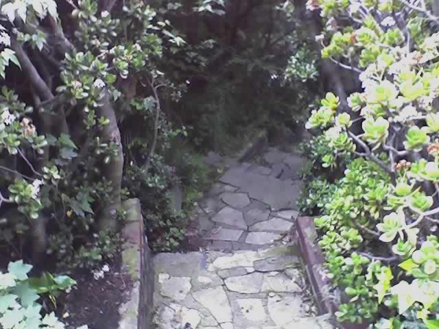 After the first curve, another set of stairs branches out to the right. This goes to the white house's garden.