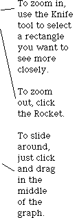 In Theorist, we make a distinction between the actual data to be shown (in red, in this graph), and annotations such as the purple grid lines and axis labels. When you slide around, for instance, you slide the data, but the annotations stay in place, continuously showing you what location corresponds to what x and y coordinates. You cannot zoom in, for instance, to one of the numerical axis labels. Why would you want to? That's not the data.